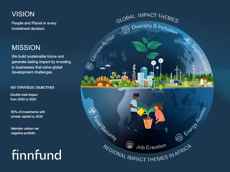 Visualisoin Finnfundin uuden toimintastrategian yhdeksi kuvaksi – esimerkki siitä, miten graafinen suunnittelu voi tehdä monimutkaisesta asiasta selkeän ja vaikuttavan.